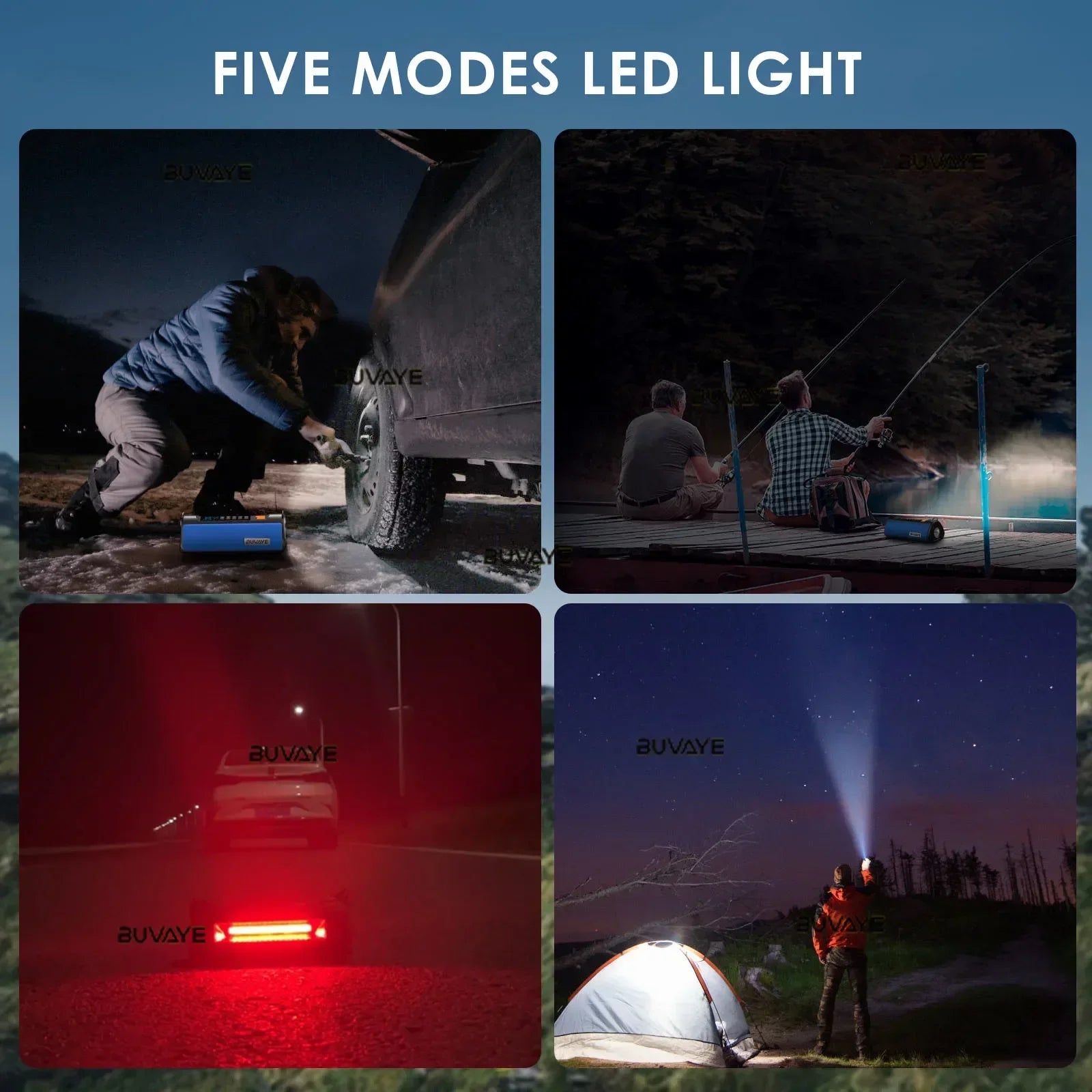 BUVAYE Car Jump Starter Air Pump Outdoor Portable Power Lamp Portable Air Compressor Multifunctional Tire Inflator with EVA Bag