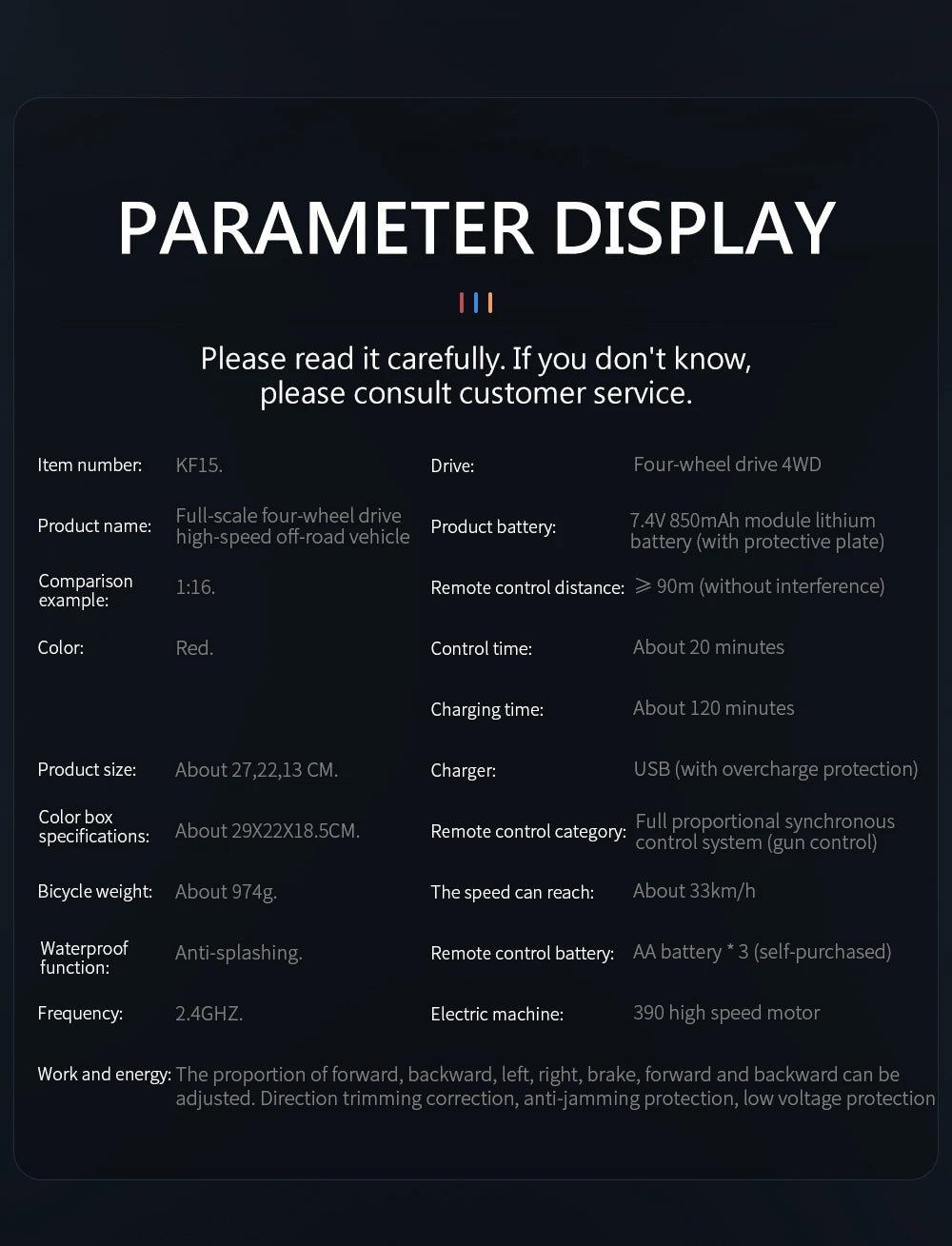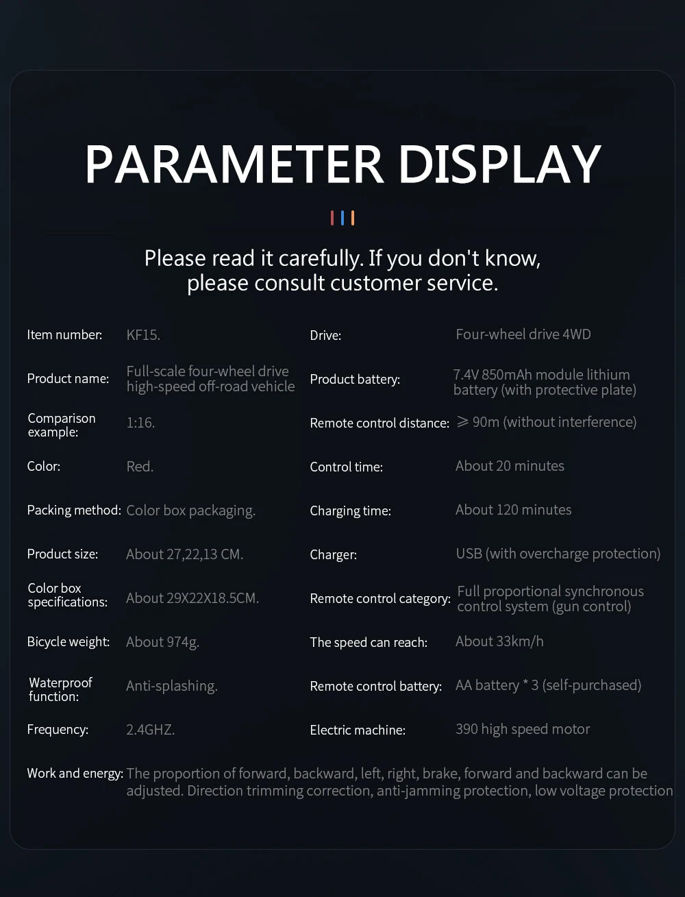 Model Number: KF15 RC Car