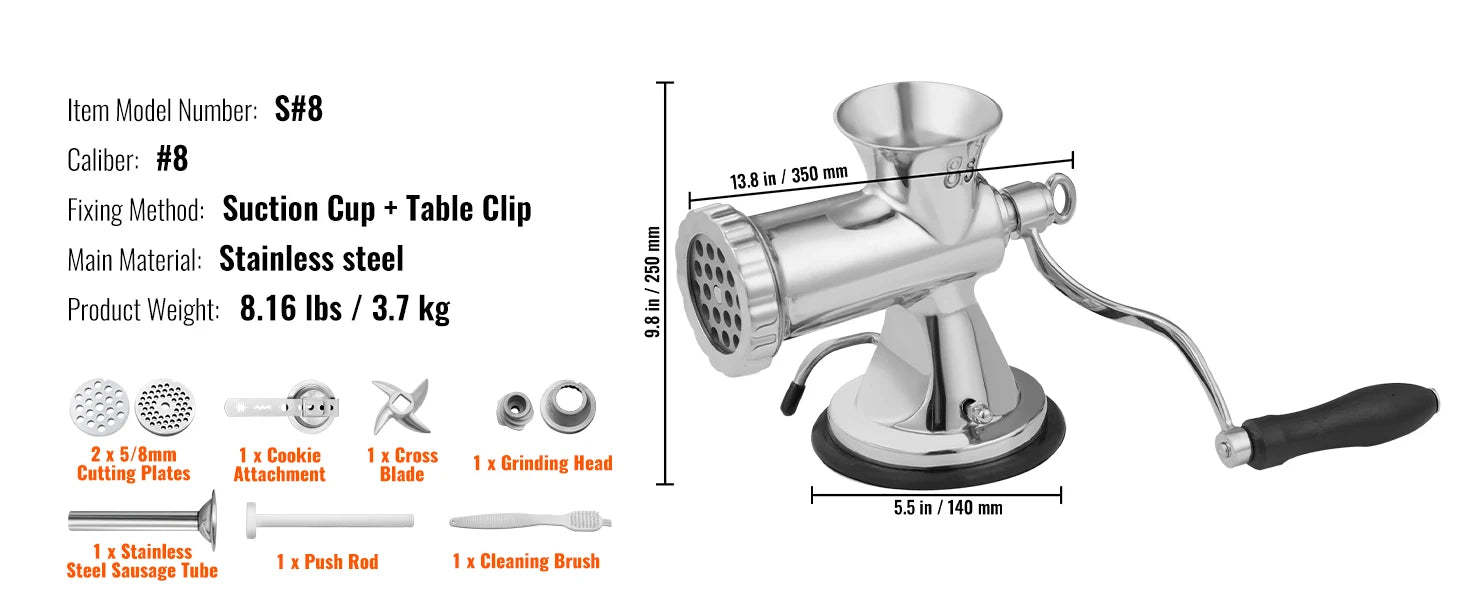 Manual Meat Grinder 304 Stainless Steel Hand
